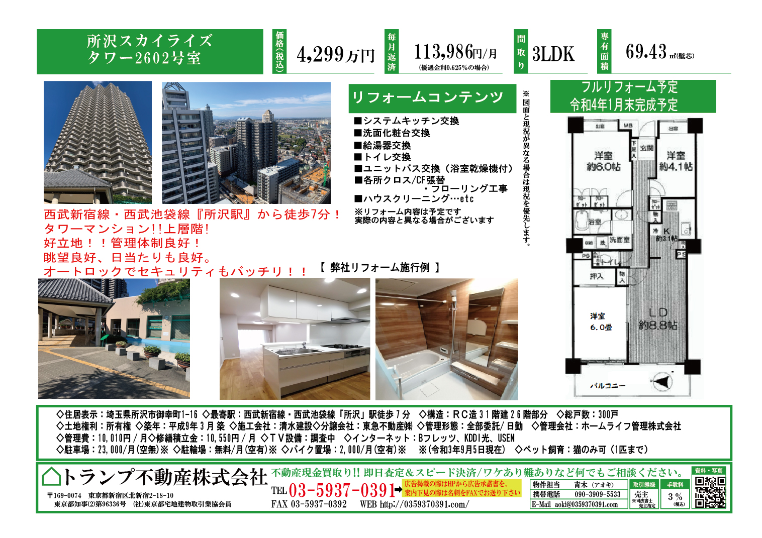 | 土地権利 | 所有権 | 専有面積 | 69.43m2(壁芯) |